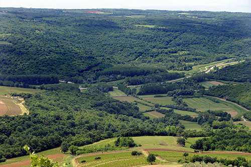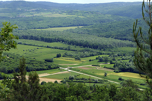 Ispod njega je dolina rijeke Mirne sa raskrižjem kojeg ćemo kasnije prijeći.