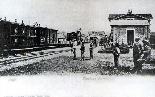 Prije stotinjak godina, dok je vlak ovuda prolazio, kolodvor u Bujama i njegov okoliš su izgledali ovako (posudio sa zeleznice.in.rs).