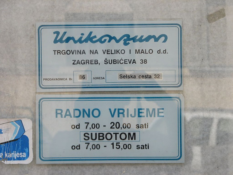 Oni stariji će se sjetiti i trgovina "Moslavke" i "Črnomerca" iz kojih je tamo negdje u 70-tima nastao Unikonzum, no njihovi su tragovi već davno nestali. Ali zato još možete baciti pogled na ovaj dućan, sakriven pored podvožnjaka u Selskoj, desetak metara sjeverno od Zlatarske ulice.
