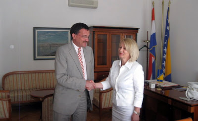 Dopredsjednica HDZ BiH, predsjednica Federacije BiH i kandidatkinja HDZ BiH za hrvatskog člana Predsjedništva BiH Borjana Krišto sastala se u utorak, 13. srpnja 2010. godine, na odvojenim sastancima u Sarajevu s veleposlanikom Savezne Republike Njemačke u BiH Nj. E. Joachimom Schmidtom i veleposlanikom Republike Austrije Nj. E. Donatusom Köckom.