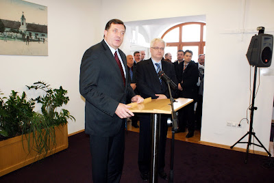 Slavonski Brod, 3.3.2011. U Sl. Brodu susrele su se delegacije Republike Srpske, koju je predvodio predsjednik RS Milorad Dodik i delegacija Republike Hrvatske na čelu sa predsjednikom Ivom Josipovićem. Između ostalog, razgovaralo se i o problematici izbjeglica, a sa predstavnicima udruga izbjeglih Hrvata iz BiH, te udruga povratnika.