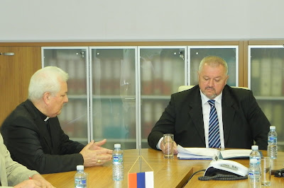 Banja Luka 06.05.2011. Ministar za izbjeglice i raseljena lica, Davor Čordaš, sa suradnicima, savjetnicom Marijom Rapo i načelnicom Odjeljenja za razvoj, informisanje i analitiku Jagodom Petrović, primio je u Ministarstvu za izbjeglice i raseljena lica predstavnike Hrvata u institucijama Republike Srpske, Dragana Jurčevića, delegata Kluba Hrvata u Vijeću naroda Republike Srpske i Iliju Marića, potpredsjednika Skupštine opštine Kotor Varoš, te predstavnike udruženja izbjeglih i raseljenih iz opštine Kotor Varoš sa mjesnim župnikom fra Antom Šimunovićem i banjalučkim biskupom dr Franjom Komaricom.
