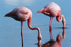 I fenicotteri hanno distintive piume rosa, gambe sottili, collo lungo e molto flessibile. La caratteristica peculiare di questi uccelli e' il becco insolitamente curvo con il quale prendono il cibo dai fanghi per filtrazione. Il colore rosa delle piume di questi uccelli deriva dalla loro dieta. Puo' variare dal rosa chiaro al rosso vivo.