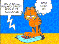 Sjećate se govora o crtićima iz posta Inspiration? Poput filma i crtići spadaju u sedmu umjetnost (no dobro službeni termin je animirani film ali to je predugačak naziv). Crtići su nekoć bili namjenjeni samo za djecu (samo se sjetitte Disneya i njegove Snjeguljice i 7 patuljaka) ptičice pjevaju kroz cijeli crtić a glavni junaci uvijek pobijede zločestu babu (ili dedu), koji želi globalnu dominaciju i uvijek je na kraju “and they lived happily ever after”. Današnji crtići ne samo da su izašli iz tog okvira nego se glavni negativci opamete i bore se protiv glavnih likova koji su se nekim čudom povampirili. Može se reći da crtići kakve smo znali, polako izumiru. Naravno uvijek će tu biti Disney Company koji će održavati tradiciju gdje dobri uvijek pobijede ali i oni padaju pod utjecaj današnjice, jer se u njima valjaju takve fore da klinci od 4-5 godina ostaju sa otvorenim vilicama i svako malo pitaju mamu (koja s njima gleda) što je Mulan/Herkul rekla/rekao? Takoder se isprobava (i to vrlo uspješno) 3D kompjuterska animacija. Toliko da je Disney ukinuo sve studije za klasičnu animaciju (čitaj 2D). Posljednji crtić koji sam takav gledao je Finding Nemo i mogu reći da je sjajan, bilo da se radi o vizualnom doživljaju ili priči. No takoder se ni film od 3D ne suspreže (jeli tko gledao Final Fantasy? Itko???). Mislim daje budućnost filma u sintezi. Da pojasnim:zamislite si kako Lara Croft i James Bond skupa sa Indiana Jonesom spašavaju svijet; Jonnya Englisha i Austina Powersa u tajnoj misiji; Supermana u borbi protiv Wolwerina; ili Gandalfa,Charlijeve Anđele i Nea u borbi za pravdu (no dobro malo sam zastranio). Doduše to je već počelo jer već ima “FreddyVS.Jason” (lice s ožiljkom susreće hokejsku palicu, doesn’t ring you a bell... ?). No ostavimo se velikog ekrana i okrenimo se drugim umjetnostima. Slikarstvo, kiparstvo i slično ostavljam profesorima iz povijesti likovne umjetnosti. Priznajte si: koliko slikara znate a da to nisu Picasso, Goethe, Michalangelo ili sl.? O glazbi neću govoriti jer svako ima svoj stil i ne bi htio nekoga uvrijediti. Ja osobno slušam sve(osim teških metalaca, Cece i njima sličnih, naravno osim kad sam mrtav pijan). Moja nikad dovoljno cijenjena umjetnost je-strip. Mnogi će sad blenuti i pitati jeli strip umjetnost? Zbilja jest dragi moji (doduše ne znam je li prva, treća, deseta ili neka druga ali jest). Grubu podjelu stripova možemo ovako obaviti. Imamo komercijalne i nekomercijalne stripove. Moj omiljeni strip (i ne propuštam niti jedan broj) je ovaj gore-Garfield. U njemu ima antologijskih izjava.Za one koji ne znaju tu se radi o lijenom debelom mačku koji terorizira sve oko sebe uklućujuči psa Odiea i svog vlasnika Jona (ova dvojica zajedno imaju manju inteligenciju od kućnog fikusa). Mrzi ići doktorici (a tko ne?) i uvijek ga tjeraju na nekakve dijete ali on iz njih izađe kao pravi pobjednik sa svim svojim očuvanim kilama (molim vas nemojte sljediti njegov primjer dame moje..)