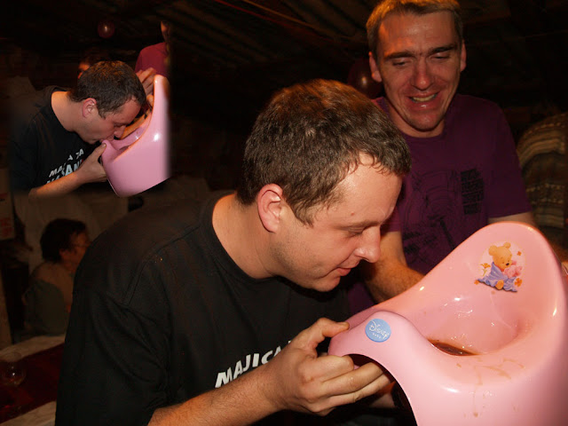 Kumovi su predviđali da će se roditi curica i u šali kupili roza kahlicu . Kako je ispalo "malo drugačije" za kaznu su iz kahlice morali popiti jednu rundu . U zdravlje kumići !!!
