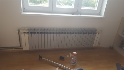 Radijator je prije par godina produžen zbog jačeg grijanja, majstor mu je dodao po 2 rebra sa svake strane. Novija su bijele boje, dok je cijeli radijator siv. Uvijek smo to nekako skrivali zavjesama i nikad nije došla adaptacija na red. Tko će to skinuti sa zida, treba zvati majstore, puno je tu posla, ima još hrpu drugih stvari za napraviti i tako isprika za isprikom. Najveća je isprika za "ne diraj radijator" bila neće ispasti dobro, to treba raditi stručnjak. Ma ne treba, može se i sam/a i uz mali budžet