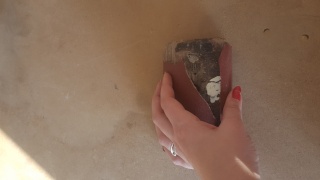 Nakon toga slijedila je sljedeća faza, a to je brušenje površina da budu ravne. Najprije ručno, čista fizikalija, a ona strojem koji se tata sjetio da ima, pa hvala tata. Sigurna sam da ne bi ispalo ovako dobro bez mašine. Jako je jednostavna za korištenje i to bez problema može bilo koja cura.