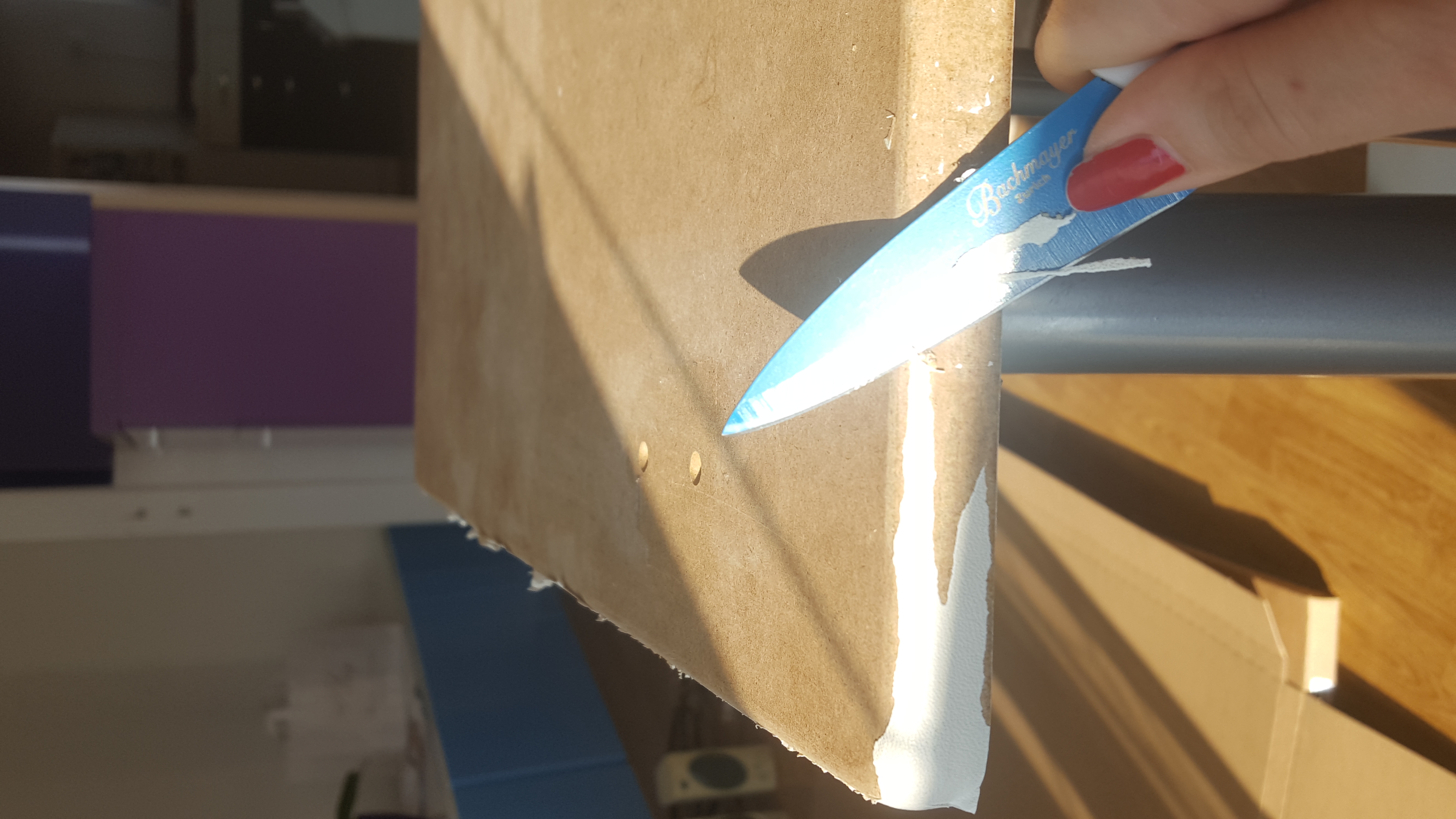 Najveća muka bila je skinuti tapetu koja je ostala zalijepljena na samom rubu stola. Nakon svih mogućih pokušaja i trganja noktiju na kraju sam uzela nož i uspjela sve oguliti.