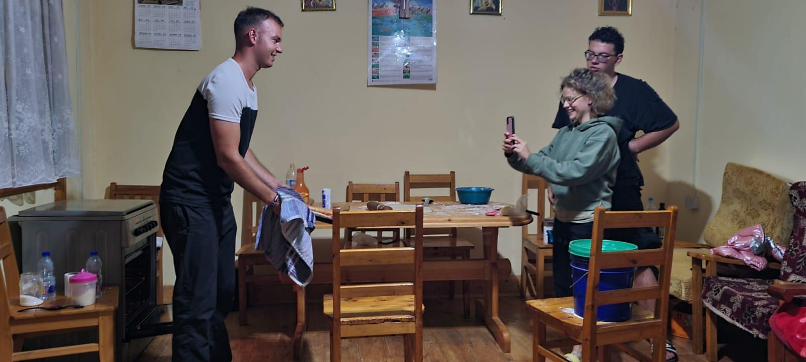 Sutradan smo radili palačinke, istim principom, ista ekipa, ali nije bilo Tome. Drška od tave je bila prekratka pa smo ju produžili granom i selotejpom. Uigrana ekipa. Miki održava vatru, ja baratam, Josip liva ulje i smjesu, Luka prinese zdjelu za gotove palačinke. Ocjena: 10/10, a Josip dao 9.2/10. Mazali smo ih nutellom, sa zamotanom bananom u sredini. Nas troje zaigramo uno prije spavanja. I rugamo se jedni drugima. Sad je 9 dice ovdje. Dođu i pitaju me mogu li spavati, a ja kažen “YEEEES, YEEEES, go get your clothes!” To su sve dica iz škole. Sušila sam im kosu, kosa im je čudo. Čitanja, Krunica, napojin se.