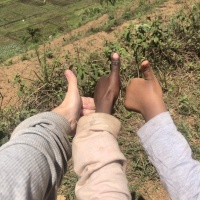 Postoje te cijevi koje dovode vodu. Postoje, naravski, i cijevi koje odvode vodu. Odvode ju negdje mrvicu dalje u šumu, ili negdje već iza kućice. Baš bih htjela otići do tog izvora vode. Neki dan smo se kupale u rječici, ne znam je li to od tog izvora, a i ne znam koliko tih izvora ima. Išle smo do madam Catherine, Ivine i Danieline učiteljice, nas 6. Ali njih nije bilo. Pa smo produžile skrooooz dolje u polje. Do potoka. U šumi smo, u dolini. Tako je lijep osjećaj. Kao da si u srcu zemlje, u srcu prirode. Takav je cijeli Lushoto, zbog svoje zelenosti i raznovrsne flore i faune. Najprije smo sjele i točale noge. Pa se krenile prskati. Pa se na kraju i cijele ubacile. Ja sam najprije otišla po suhu odjeću da se imaju u što presvući, da ne idu mokre doma. Jer nam kupanje svakako nije bilo u planu. Ubace se u potok. Kakvo je to veselje bilo. Koliko je prskanja bilo. Koliko je smijeha bilo i upućenih osmjeha. Voda je našim ulaskom postala mutna, jer je dolje mulj. Baš gusti, gusti teški mulj, staneš i jedva nogu izvučeš. Tako je meni Birka ostala u tom mulju. “WHERE’S MY SLIPPAH, WHERE IS MY SLIPPAAAAAHHHH”, derem se ja s Ivom u naručju. A malecka Iva se dere na mene kao prava mama: “I TELL YOU WHAT, I! TELL! YOU! WHAT!. Jer, naravno, rekle su mi da ne ulazim u šlapama, ali ja kao vrsna poznavateljica mora, voda i mulja - ušla… i eto ostala mi šlapa u mulju kako bi bila pronađena u roku minute.