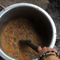 U srijedu smo kuvali gulaš pod mojom palicom. U crnoj kužini, na drva, s tečom na ciglama. Bilo je dobro, Josip i Luka su ga ocijenili s 9.2/10. S ljubavlju san ga radila, u sjeckanju i kuhanju Te uvijek pronađem. Hvala Ti na svim tim momentima u kojima ću te sa sigurnošću pronaći, u to sam sigurna, onda kad mi je teško. Najprije smo sjeckali povrće i meso i pričali, nas troje. Sprdali se i rugali se. Onda dmo otišli u kužinu kuvati. Nas 5. Miki, Tome, Luka, Josip i ja. Miki je bija zadužen za vatru. Luka i Josip za nadolijevanje vode u gulaš i dodavanje namirnica, a ja sam mišala. Tome je sidija hahaahaha. I ofc mama na WhatsAppu za pitanja i nedoumice - volim te. Baš doživljaj. Pada noć, nema svjetla, samo malecka lampa koja jedva osvijetli. Miki ima lampicu na glavi pa si osvijetli kad cijepa drva i gulaš. Sjedimo u krugu oko gulaša i vatre, gledamo kako se krčka, komentiramo triba li vode i bivamo. Kako dim krene u mene, oči krenu suziti koliko to grize, a pogotovo kad miješam. Gulaš se pojeo. O da se ne zaboravi, Luka i Josip su radili pizzu, ali u modernom štednjaku.