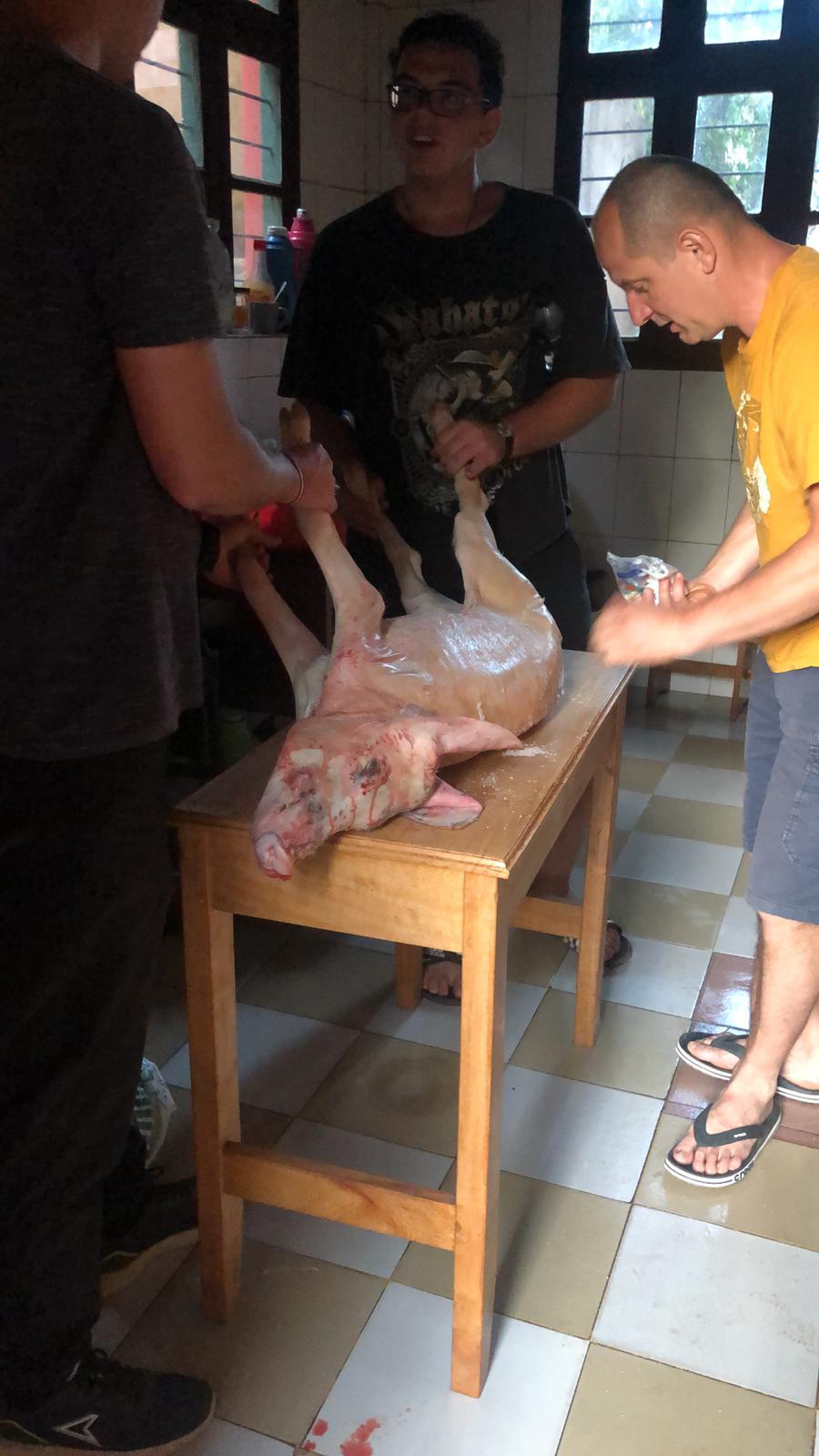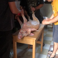 Novu godinu smo proslavili uz svinjetinu s ražnja koja je dan prije zaklana. Ja to nisam mogla gledati i mislila san da ju neću jesti. Ali san ju ipak čopala. Ja san radila kolač s pudingom i običnim keksima. I francusku salatu bez krastavaca. Kako sam uspjela da mi puding zagori…