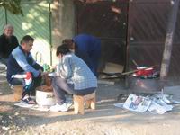 Pri odlasku smo upalili auto na guranje, ni ne sluteći sto nas očekuje dalje. Odvozili smo privh 6 makadamskih kilometara kroz šumu i svratili u jedno albansko selo kako bi dogovorili jedan mali građevinski zahvat na vikendici. Kako smo isključili motor, tako se više nije htio upaliti. Uskoro nam je skoro čitavo selo priskočilo u pomoć i nekako smo uspjeli upaliti auto (ne zgazivši nikoga…), ali više nas nije mogao vući uzbrdo, pri najmanjem usponu je potpuno usporavao i na jedvite jade savladavao bilo kakvu prepreku. Da skratim, išao je samo nizbrdoooo... Uspjeli smo odvoziti nekih 3 kilometra konstantog spusta da bi onda, baš kao Jamajkanski bob-tim na Olimpijadi, gurali uzbrdo i ponovo uskakali u auto na nizbrdici. Bilo je smiješno, ali bogami i fizički naporno.