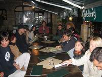 Počeli su prijedlozi za karte sa Balkanskim igrama (tabla I sl.), ali Švicarka i ja ih nismo znali. Onda je domaćin predlozio Risiko, ali je nakon desetak minuta objašnjavanja kroz suze od smijeha shvatio da zna sve osim ključnih pravila. Dakle, nista od toga. Onda nam je Švicarka predložila da igramo igru koja se zove Gamsch! koja se sastoji u tome da se igra u parovima i da jedna osoba treba sakupiti 4 iste karte, bilo koji broj u špilu. Kada ih netko sakupi, treba dati tajni znak svome partneru preko stola kako bi on/a viknuo/la Gamsh! i tada dobivate jedan poen. Isto tako, ako uhvatite protivnike da imaju 4 iste karte, treba viknuti Gamsch!, svi otvaraju karte i ako ste u pravu opet dobijate poen. Dakle, treba istovremeno gledati u karte na stolu koje su slobodne za razmjenu kako bi se prikupile željene karte, treba gledati svog partnera, sebe, protivnike. To postaje s vremenom izuzetno naporno i naravno, izuzetno smiješno, kao kada vam partner već tijekom 5 dijeljenja karata bezuspješno pokušava pokazati da je vrijeme viknuti Gamsch! i onda vas na kraju protivnici prokuže, viknu i odnesu vam bod… Umirali smo od smijeha, a naša draga gošća se držala za glavu – uglavnom od smijeha, ali i od očaja. Naime, ja sam joj bio partner… :-)