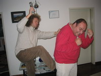 Petak sam sasvim slučajno 'odradio' opet 8 sati u bivšem uredu, spremajući na hard disk nekih 100-tinjak DIVX filmova koje sam kupio za razbijanje dosade tamo negdje daleko. Cijena: prava sitnica, 2.5 kune po filmu, hehehe... Navečer sam otišao na Christmas party kojeg radimo u firmi svake godine i pobjegao sam nakon sat vremena: muzika je bila preglasna za moje bubnjiće koji su je bolno podnosili, dima je bilo na sve strane, a skoro jedina priča je bila ona o poslu. Ja sam sada na odmoru, a na odmoru me uopće ne zanimaju priče iz Angole '94 niti pak iz Rwande '95 itd. Vratio sam se doma na vrijeme da još malo pjevam nešto lijepo sa svojim ljudima.