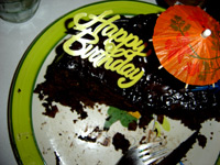 1 zagrebački pušlek, 1 elektro ljubičasti karmin, 1 upaljač koji je to samo naoko, a zapravo je tajni box, 1 secesijska ilustracija tete koja gleda kroz prozor i najbolje od svega; 1 TORTA. Crna torta od rogača i gorke čokolade; prava pravcata; domaća, ručni rad, sa svjećicama i sve!! |