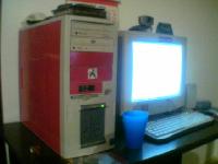 ovo mi je najbolji prijatelj na večer kad nemam kaj za radit ja se s njim volim igrat...da naso sam farbu,točnije sprej crveni i reko idem ga malo ukrasit i pofarbo lik kučište,vidite i sami kaj,ove plastike,lim i brijo sam ič monitor pofarbat al nisam imo više farbe,a da idem u kemoboju,nije mi se dalo,jer mi se nije dalo,jer mi se fakat nije dalo...i sikter