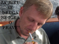 Sinoć se odigrala više nego dobra utakmica,a ekipe u sastavu,već pomalo i klasičnom;za bile:Mačor,Jure,Dario i Mrki;plave majice su nosili:Ante,Miro,Bili i Đani. Već pri samoj podili ekipa Đani je,pogledavši svoje suigrače,ustvrdio da su oni prejaki za ekipu bilih i da bi se možda tribali ponovo podilit-e Đani,Đani,nije ti to jedina pizdarija koju ćeš te večeri učinit. Očekivano tvrdu utakmicu otvaraju dva brata pogocima za bile. Plavi ne daju bilima da se "odlipe" rezultatom. Poluvrime 4:2 za bile. A onda kiša golova u 2.poluvrimenu. Odlaze bili i čak na 6:3,ali uporni plavi stižu na 6:5,pa ponovo bili efektno za 7:5,ali plavi ne daju disat i drže utakmicu totalno neizvjesnom,jer se u završnicu ušlo za 7:6 za bile. No,da bi dvojbe bile otklonjene u pobjednika,pobrinuo se Mrki golom za 8:6 i postavio konačni rezultat.U krnjem sastavu i bili(bez Mačora) i plavi(bez Ante)su odigrali na skraćenom terenu utakmicu do 6.Poveli plavi 2:0,a onda ih bili,onako od zajebancije, dobili 6:2.Nastavak u Oz-a gdje se hrabra petorka(Đani,Jure,Dario,Bili I Mrki) nalivala do sitnih sati i pokušala nadomjestiti izgubljene tekućine tokom utakmice. Đani se sa 3,3 promila u krvi čudom čudio novom rigoroznom zakonu i pokušao u povlačenju iz Oz-a zametnuti tragove organima gonjenja, koji su ga gonili sa upaljenom rotacijom.Uz koordiniranu akciju pojedinih srk-trkovaca,Đani je uspješno izveden iz grada prema Bratušu. Po zadnjim informacijama koje imamo,Đani je u strahu od uniformiranih osoba prespavao negdje u žbunju u okolici Makarske.Srk- trkovci su već skupili 7 kuna,za ne daj bože,uplatu kaucije u slučaju najgorega. Utakmica: Bili.......8 Strijelci: Mrki(4),Mačor(2),Dario(2) Plavi.....6 Strijelci: Đani(3),Miro(1),Ante(1),Bili(1) |