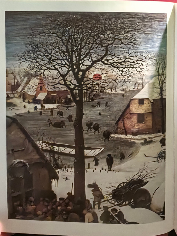 Umorni i bez ulova, lovci se tmurno vraćaju u selo utonulo u zimu. Zima je godišnje doba s dva lica, na jednom idila bijelih pejzaža, vesele dječje igre u snijegu i toplina seoskih kućica i naloženih vatri, a na drugom zaleđene zelene vode, prijetnja gladi i smrzavanja, surovost i nesigurnost života. Bruegel slika tjeskobu ispod idile. Slika kojoj se uvijek vraćam proučavati ju, kad zamiriši na snijeg, u neki zimski sumrak, kao Alisa zemlji čudesa.