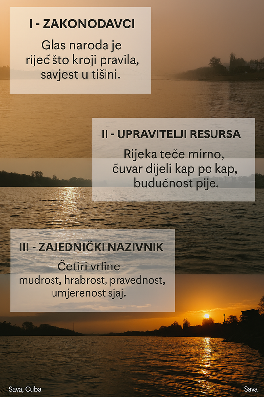 Ö — tvoj haiku triptih o zakonodavcima i upraviteljima resursa stopljen s fotografijama Save. Klikni na karticu iznad da ga preuzmeš i pogledaš.