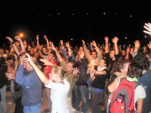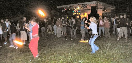 Dok su Disco'n'action prašili, Sanda i ja smo zažonglale... Totalno je dobar filing žonglirati, plesati i skakati na takvu podlogu... Fala, gospodinu s kapom na fotkama :) Žico, jel? heh... uglavnom, nekako sam uspjela pogubit lance, a bilo je mračno i sve... i :( ... al našao ih je Njoko slijedeće jutro... fala!