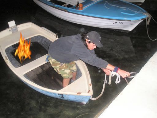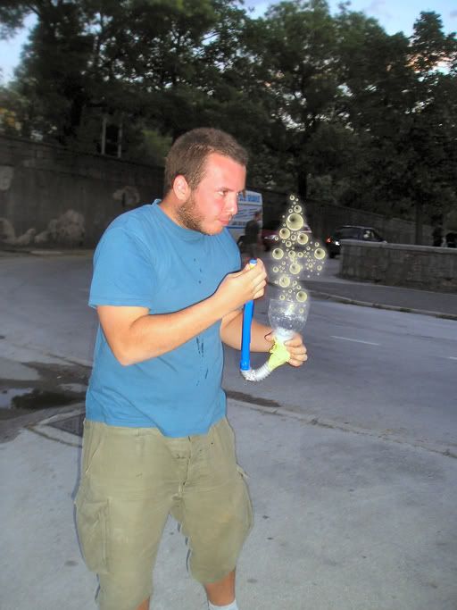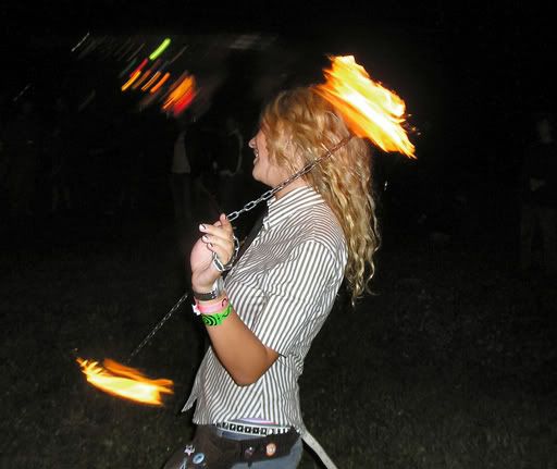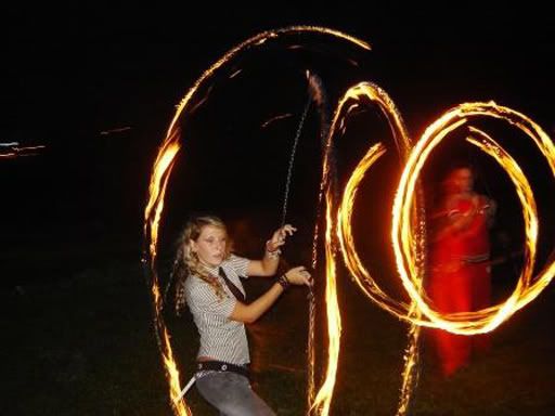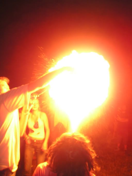 Neke cure iz Splita su žonglale, pa su mi posudile Poi, iako me onaj konobar tamo pol sata tlačio dal sam pijana, dal sam to ikad radila u životu njanjanja... al ok, shvaćam ga... tako i ja uvijek tlačim ljude kad mene pitaju da im posudim zapaljeni poi... još najbolje da se netko tamo zapali, pa da mene okrive... i neki simpatični dečko sa dredovima je bljuvao vatru , fora mi je ova slikica ispala....