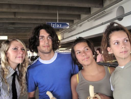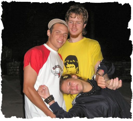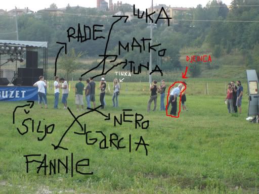 I žonglala sam malo tamo u onom Bambus baru, fora neka atmosfera je bila.... i Vjeko The goli kuhar je isto žonglao... ma on je meni baš drag :) svi neš kenjkaju, a baš je onako aaaaw Vjeko mali, heh :) da, da, Domagoj sa DC majicom, još jednom da te čujem da pričaš ružno o njemu.... heh.... i upoznali smo ove dečkiće koji se vole :) i Anđela bila tamo... , heh, o njoj sam čula dosta, al je nikad nisam upoznala, pa eto.... :)