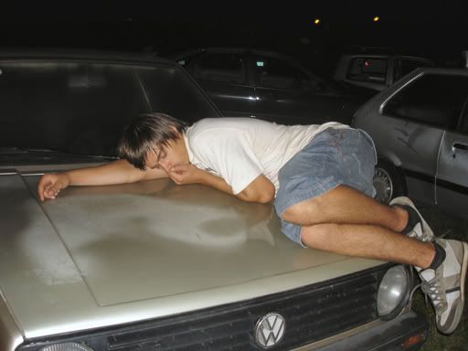 Dok smo se Sara i ja zabavljale na stejđu, Ripi je uspio zaspat na nečijoj haubi... Nakon koncerta srela sam i kolegicu Riu , pa smo si malo poplesale... :) Kiša je, kao naručena, počela padati taman kad je svirka završila... u biti, ljepše bi bilo od nje da se nije uopće pojavljivala tu večer... pa bi druženje nastavili u normalnim uvjetima, a ne zgurani ispod tende, kraj šanka....