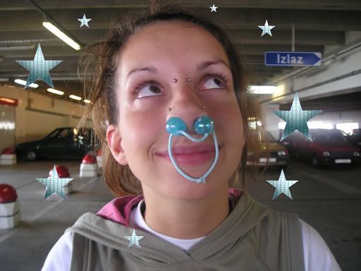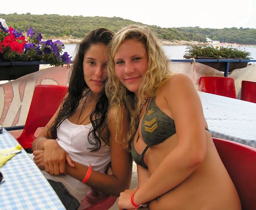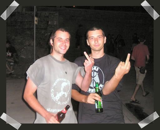 Popodne išli do Labina... Tamo se malo družili na parkiralištu, glupa kiša napokon prestala... Rade & ja stajlamo ... predobre su mi ove naočale.... :) Dodo je bio presretan zbog beerbonga , i moram priznat da ga je puklo podosta... Lošonja jedan ;) Upoznala Ripija & Wandu iz Zagreba.... heh, predobri ljudi... Wandica onako hiperaktivna, zakon zakon... a Ripi & Mirko su baš cijelu večer nabacivali neki prosti freestyle.... nije se to meni sviđalo ;) Sve neki prljavi punkeri oko mene, i prosti ljudi :) , heh...