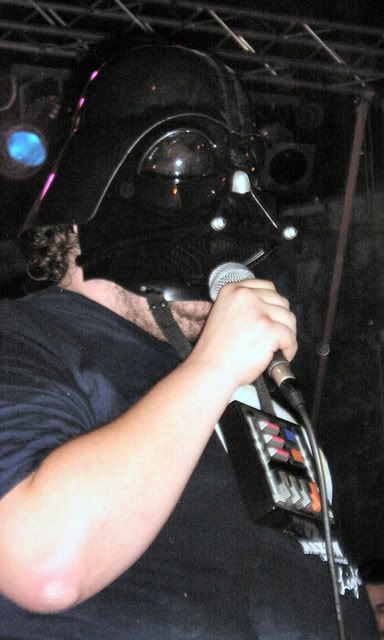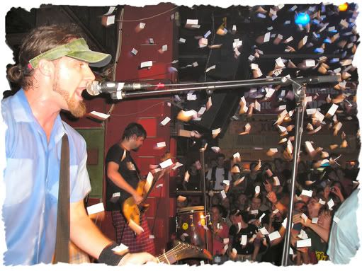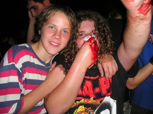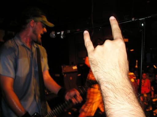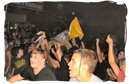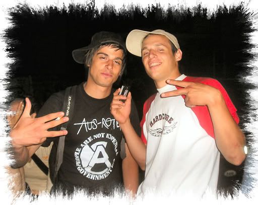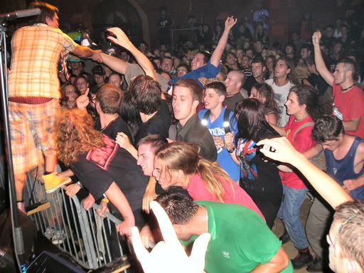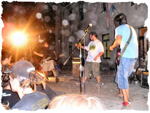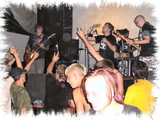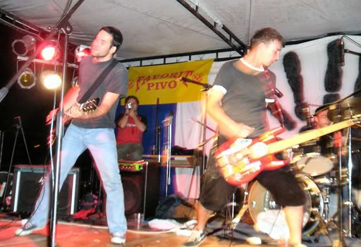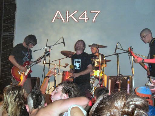 Rade se usred bijela dana napio ko nikad... , heh.... ma nije, al na ovoj fotki ful tako izgleda.... Upad je bio 35 kn čini mi se... ja htjela uć samo zbog AK47... tolko sam puta čula za njih, ljudi masovno furaju njihove zakrpe... al ih nikad nisam imala priliku poslušat... pa si mislim, eto super... Negdje na netu sam pročitala : AK47 -> AnarchorevolucionarniveganXstraightedgeXhardcorepunkkolektiv... pa ono... da... kao što sam već rekla, nisam ih nikad poslušala, textove nisam još nabavila, pa ni ne znam o čemu pjevaju, stoga ih ni ne mogu komentirati... evo još jedna fotka... ... onaj Fistra mi se čini neki natmureni... nisam ga niti jednom vidjela da se smije... al to je nebitno za cijelu ovu priču.... Poslušala sam još i Diverziju iz Osijeka... baš ono Debeli predsjednik... i pjevač ima onako one neke Koca pokrete i stav sa onom gitarom... heh... al nije da ja sad tu nešto kenjkam njanja kopiraju ih... pa zašto im Debeli ne bi bio uzor... kolko sam skužila, tipovi su moji vršnjaci, ono 18 – 19 god... pa zaš ne bi tražili uzor u svojim sugrađanima... eto.... :)