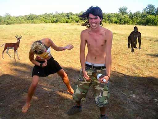 Onda išli u Bale, na onaj Istria in reggae festival.... Bahah, došlo je negdje 100 ljudi.... i na kraju nismo ni ulazili... mislim da je upad po danu bio 50 kn... pa smo se sprdali ispred, i bilo mi je predobro.... bahah, pogle ti kako liče ova dva na desno :) !! A ovo mi je super fotka.... Došlo je još ljudi... i saLe, koji ima naaaajljepša leđa ikad... :P Ovdje Nikica & ja gledamo zamišljeno u daljinu, nakon slušanja Elvisa... :) Tripi je ipak ušao na festival, al preko neke ograde, i cijele si je noge izgrebao.... Mi smo u međuvremenu pjevali i veselili se :) .