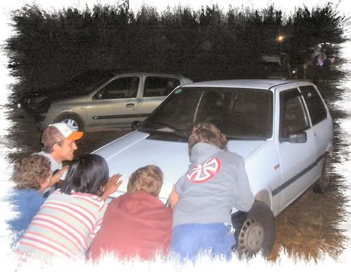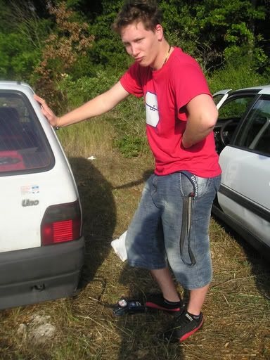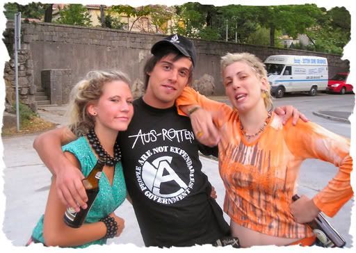 Srela sam tamo u Pazinu i kraljicu i kralja Jugoslavije , pa smo se malo družili.... :) I onda smo svi kolektivno krenuli na spavanje u neki park... Stefi je bila hiperaktivna, i nikome nije dala da spava... pa smo stalno pjevušile Bibu i išle svima na živce ... i taman kad smo se malo smirile, i kao idemo spavat; počela kišica... Rade, Grga i ja se sklonili u Radetov Peugeot... i nekako skvrčeno uspjeli zaspat... Ujutro pošli do Rabca... Tamo srela Bojana i Teju ... Teja imala neko ružno iskustvo na stopu sa starim barbićem koji joj je prepričavao priče o svojoj kiti.... eto, zbog čega ja ne volim stopat... stari perverznjaci...