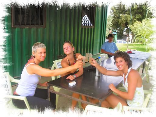Dosta je bilo ekipe iz Ri , na ovoj sličici; Teuta, Una i Matea... a došla i ekipa iz Buzeta i moja ( još jedna ) imenjakinja... a na sličici i gospodin Radović s kojim sam svako jutro ispijala fine kafice za 5 kn... pričali mi o svemu i svačemu, i baš me nekako ugodno iznenadio :) ne znam zašto, al nisam ga takvim zamišljala... ( btw, prst je sređen, predivno sam to obavila, jel? )