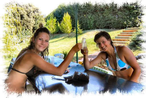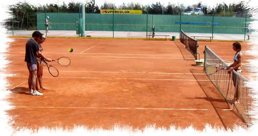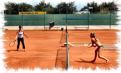 Tmrw, smo se zaputili u Pulu... 1. na kupanje... muškarci ( pffff ) su pošli igrat nogomet... a mi se skompale s nekim tipićem što drži teniske terene.... Barba nas je počastio rakijicom , i onda nam je dao da malo igramo tenis... Tu Tihana i ja rasturamo :) ... A onda je i Matko uskočio da pokaže koju fintu... .... ipak je on trenirao tenis 13 godina.... heh.... Poslije partije tenisa smo si nazdravile još jednom... Prokleta rakijica.... Prespavala sam poslijepodne.... i probudila se na Monte Paradisu....