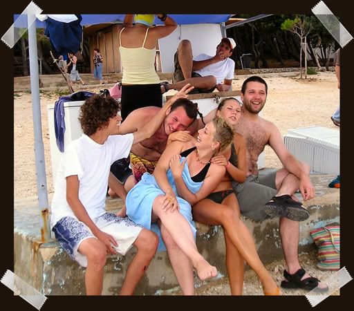 I gospodična Chakra :) .... je bila tamo.... i tako :) Drugi dan smo se išli kupat u Rabac... Dobro da smo imali auto, jer bi ja crkla... ne znam, al ne bi kao masu ekipe mogla po cijeli dan visit ispred onog marketa po najvećem suncu, sa pivom u ruci.... to mi, šta ja znam, bzvz.... Nama na moru bilo baš dobro... Rade, Dodo, Wanda, ja, Tuna&Fannie i Grga u pozadini...
