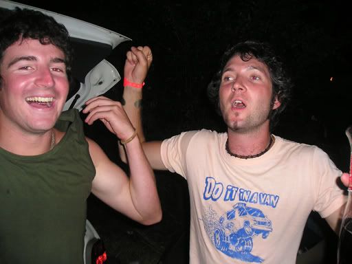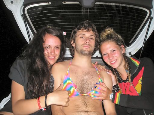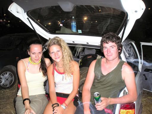 2. dan je bilo neko šugavo vrijeme... Daddy Freddy (jam) & Tricky D (d) mi se nisu baš previše svidjeli... prenaporno mi je to bilo... kasnije je počeo takav pljusak ... Stew i ja smo se skinuli u kupaće i tamo plesali po toj kušurini.... baš je bio gušt :) Popapali ćevape, i zaspali u autu... zakon filing, onako vani pljušti, grmi.... a ti na sigurnom, suhom i zatvorenom.... usput smo pokupili nekog dečka iz Zg-a, Medo ja mislim da ga zovu... bilo mu je ful loše... i 2 dana je kljucao tamo, nije se uopće micao... došao je s nekom ekipom, al strašna mu ekipa.... mislim da bi tamo istrunuo da mu nisam s vremena na vrijeme nosila vode i hrane... a bed....
