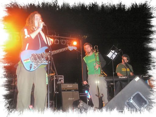 Ajd, pa da napišem kako mi je bilo na Seasplashu... :) Dakle -> 3rd SEASPLASH REGGAE FESTIVAL, Marsovo Polje, Pula, Croatia, 21. - 23.07.2005. ... Jednom riječju : Predivno :) Do zadnjeg časa nisam znala s kim ni kako ću ići.... i onda Dodo * fala fala puno * pitao Sašicu dal ima 2 mjesta u autu... Sašica * fala fala i tebi puno * reko da ima... i super :) Još su išli i Adam & Stew , Sašini frendovi iz Australije... i joj, super su mi bili... totalno veseli, zabavni i smiješni... heh... e... i kad smo stigli, stavili smo šatore izvan kampa.... to ispalo sasvim ok, jer je unutra bilo nekako preeeviše ljudi, previše šatora i previše pomiješanih zvukova sa svih stejđeva.... Ja htjedoh 1. dan poslušati B.R. Stylerse ( Ita ), a budući da su oni ostatku ekipe bili dosadni, jedva sam namuljala Dodota da ode sa mnom ih pogledat... eto slikice od pjevačice , barbe za klavijaturama , i spešl stajlera basiste .