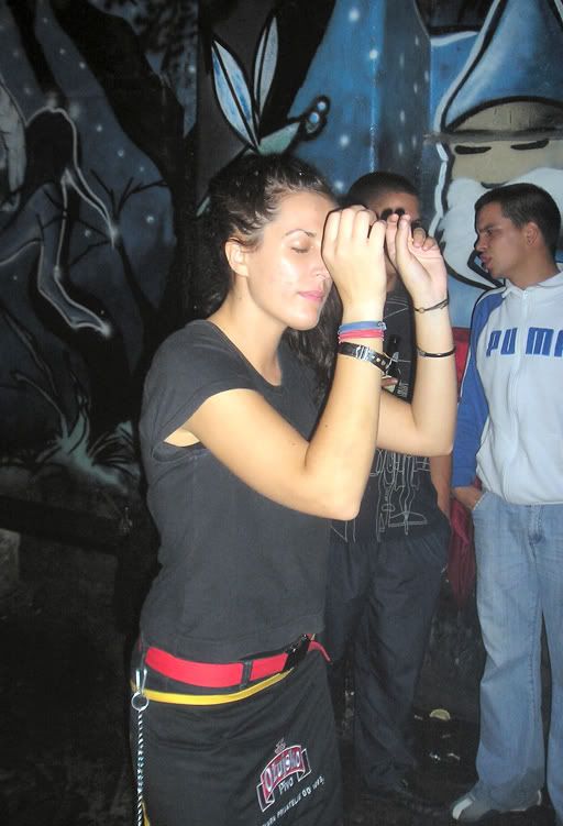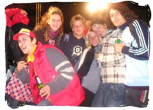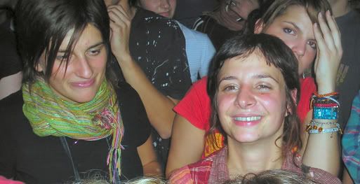 Stigli do Močvare... Ok je prostor... Malo premračan za moj ukus... Možda i malo prezadimljen... al eto... Unutra nisi mogao ne primijetiti ove vrsne plesače... Moram priznati da su najljepše plesali u cijeloj Močvari.... Odjednom se pojavila i Renata iz OS, i nutkala nas pivom *fala lipa* koju smo Matea i ja odbile, pa nas je ona čudno gledala :)... Htjedoh popričat malčice s njom, ali je muzika bila preglasna, i nije mi se dalo naderavat joj se u uho.... Ionako kad meni tako netko usred koncerta počne nešto pričat, bude mi bed nakon sedmog " Eee, šta si rekao? Ništa te ne čujem! ", pa samo počnem klimat glavom.... Dobra muzika se puštala... Incubus, Apc, Tool, Deftones, Fait no more, RATM, Nirvana... Lijepo smo se naskakali, moram priznat... Super je kad si okružen masom nepoznatih ljudi, i nije ti bed plesati, skakati i glupirati se, jer znaš da te nitko ne odmjerava... Za to vrijeme su se Tanja i Mihovil mlatili ispred, al su se ipak na kraju pomirili... Došla u 6 ujutro doma i žderala neko meso bljakavo iz menze... u 6 ujutro.... zdravo, nema šta...