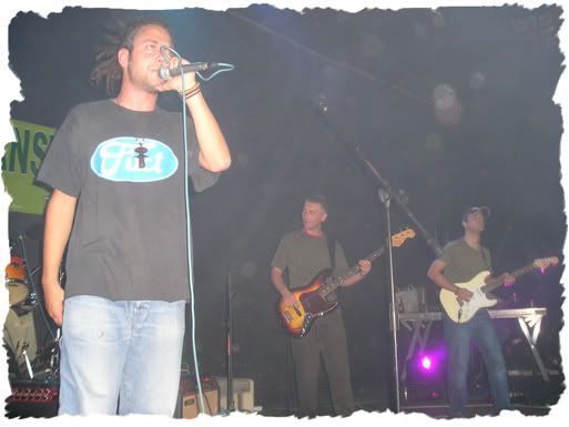 Stillnes ima dobrih stvari! Ima i mirnih reggae, al i žestokih nekih nabrijanih pjesama... Atmosfera i dalje dobra... Čak su se i grudnjaci ( sa leopard uzorkom ) i tangice bacali na stejđ ( točnije, na gitarista... heh, zakon slika :) )Nisam niti jednom dobila laktom u facu, ili tenisicom u potkoljenicu... Baš lijepo... :) **1.**2.**3.** Nakon njih Hakoona Matata... Pol sata smo se prepucavale dal je OVO onaj Krešimir Mišak što vodi Na rubu znanosti.... Matea tvrdi da je, ja mislim da nije... Molim vas, riješite nam tu dilemu... Hvala...