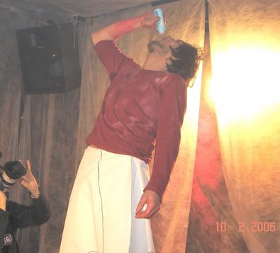 Ja potpuno trijezna, okružena hrpom pripitih i dobro raspoloženih ljudi... Lijepo, lijepo! :) Evo, ova gospoda htjela da ih slikam, pa reko zašto ne.... A ovaj mladi gospodin je sigurno ispucao makar 500 fotki... Napisala bih vam adresu na kojoj će osvanuti, ali budući da je ne znam... Pa ako netko zna, nek mi dojavi! ;) A baš mi je žao što je fotka mutno ispala, gle ti te plave oke i u njega i u djevojke... divno! :) Uf, pipničarka Ivana i ja smo puno i previše puta pale na istu foru, ah, mlade i naivne... Što se tiče pjesama, repertoaru iz kantine su dodali još par stvari... Incubuse, Tool... i iako je publika tražila Sober, čuli smo samo Stinkfist... I za kraj, moram samo napomenuti da sam presretna što sam doma stigla u jednom komadu... uh.... da...