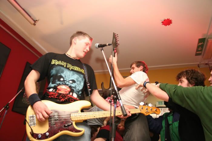 Upale taman na kraj Postolara Trippera, koje smo svi, ako se ne varam, gledali prije par godina u Briljanteenu i njegovoj rubrici "Demo bendovi"... "Koga čega? Janjetine! Komu čemu? Meni! S kim, s čim? S kapulicom mladom... " , i to je to što se tiče ovog zadarskog dvojca... Poslije njih na stejđ dolaze Lost Propelleros iz Novog Sada i kreću sa svojim reggae/ska ritmovima....**1.**2.**3.** ... A Pauk se puni do te mjere da je za šankom tooolika gužva, pa nakon 20 minuta čekanja pive na kraju razočarano odustaneš... Eh, da, i moram napomenuti da je DJ koji je puštao muziku između bendova očito neki ludi fan SKA-P-a... Stalno je njihove stvari vrtio!