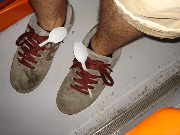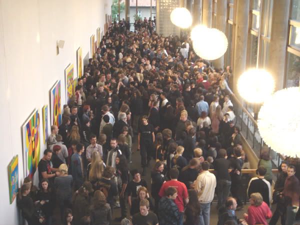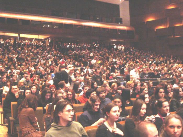 Stigli oko 6ipo i zaputili se to the supermarket po ljubičasti Leffe... Malo prošvrljali po štandovima sa fušarskim majicama te smo Elbica i ja nakon ugledane crvene petokrake iznad Tool natpisa zaključile kako će ljudi spojit čak i nespojivo samo da bi uvalili pubertetlijama i prodali. Uglavnom, ušli mi u dvoranu i posjeli se na tribine. Spoonman je odmah izjavio kako ide divljat u prve redove, a ja sam se s obzirom na neprikladan odabir obuće ipak zadržala na less crowded plejsu... Pouka; bez obzira na pretpostavke da " to nije punk koncert na kojem postoji mogućnost da završiš u brutalnom pogu", ubuduće ne oblačit tenisičice ili balerinkice na poveće koncerte... Isto tako nisam htjela da mi konstantno naguravanje od strane pijanih/agresivnih/svakakvih ljudi ( kojih se uvijek nađe ) pokvari doživljaj koncerta. Rastrgaju te na 100 strana i onda se naživciraš odmah u startu... Ovo sam htjela odslušat " u miru kako spada". I jesam... :) Looka i Mia me napustili i ošli iskusit čari prvih redova, pa smo Đana i ja fino izule cipelice i bose uživale na tribinama u 100minutnom koncertu.