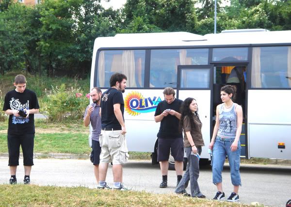 A 22.6. smo napokon dočekali i taj odlazak u Bolognu... Tulj! Tulj! Tulj! ( Hm, Maki da objasnim, a? :-P )Računajući na podužu vožnju do dvorane PalaMalaguti, Mia & ja lijepo ubole ono mjestašce odmah kraj drugog ulaza u basu, pa smo imale mjesta za rastezanje nožica i mijenjanje poza. Da vrijeme brže proleti naprezale su se moždane vijuge i rješavale križaljke... uTuKku je negdje na početku putovanja propjevušila kobni " Tko si ti da mašeš prstom... " stih kojeg niiikako nisam mogla izbacit iz glave ostatak dana... Heh, joj da, ne mogu a da ne spomenem The Šoleta ( Photo; M.B. ) i štorije vezane uz njega... Ma uostalom, pročitajte detalje u postu ONE man against the road! :)