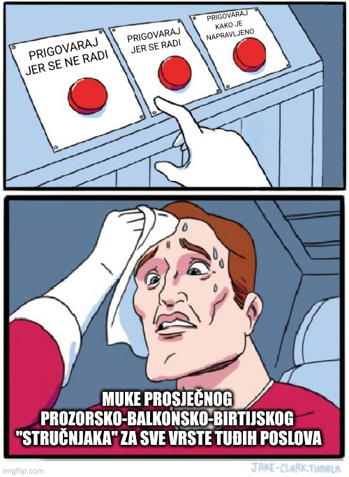 Jer dokle god im je jedini doprinos zajednici snimka s balkona i status pun sraćkanja po radnicima komunalnih službi, uz povremeno glumljenje "stručnjaka” ili "žrtve", problem neće biti ni radnici, ni radovi, ni službe, već upravo oni – prozorsko-balkonsko-birtijski “stručnjaci” za koje je sve uvijek krivo, i za koje su svi nesposobni i neznalice - osim njih.