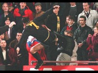 Cantona je zamalo pokvario sve dobro što je učinio incidentom na gostujućoj utakmici protiv Crystal Palacea 25. siječnja 1995. Nakon što je namjerno udario Palaceovog braniča Richarda Shawa (Cantonu je isprovociralo to što sudac nije dosudio prekršaj na njemu zbog očitog potezanja Palaceovog braniča).Dok je izlazio sa terena isprovocirao ga je Matthew Simmons,rasistički nastrojen Palaceov navijač,a Cantona je uzvratio poznatim kung – fu udarcem.(na suđenju Matthewu Simmonsu zbog prostačenja i nedoličnog ponašanja optuženi je napao tužitelja nakon što je proglašen krivim.Preskočio je optuženičku klupu i zadao svoj vlastiti kung – fu udarac.Optužen je na 7 dana zatvora,no odradio je samo 24 sata.)Na press konferenciji koja je bila zakazana nakon tih događaja Cantona je dao svoju vjerovatno najpoznatiju izjavu.Novinari su se skupili da bi čuli Cantoninu izjavu,Cantona je ušao u sobu,sjeo i na usporen i smiren način izjavio: : "When the seagulls... follow the trawler... it's because they think... sardines will be thrown into the sea".Zatim se digao i otišao,ostavljajući brojne novinare u čudu.Određeno mu je 120 sati humanitarnog rada nakon žalbe sudu (prijašnja kazna bila je 2 tjedna zatvora zbog napada.Također je kažnjen i od strane Nogometnog Saveza zabranom igranja do sljedećeg kolovoza.Manchester United je te sezone ispustio naslov,koji je osvojio Blackburn.