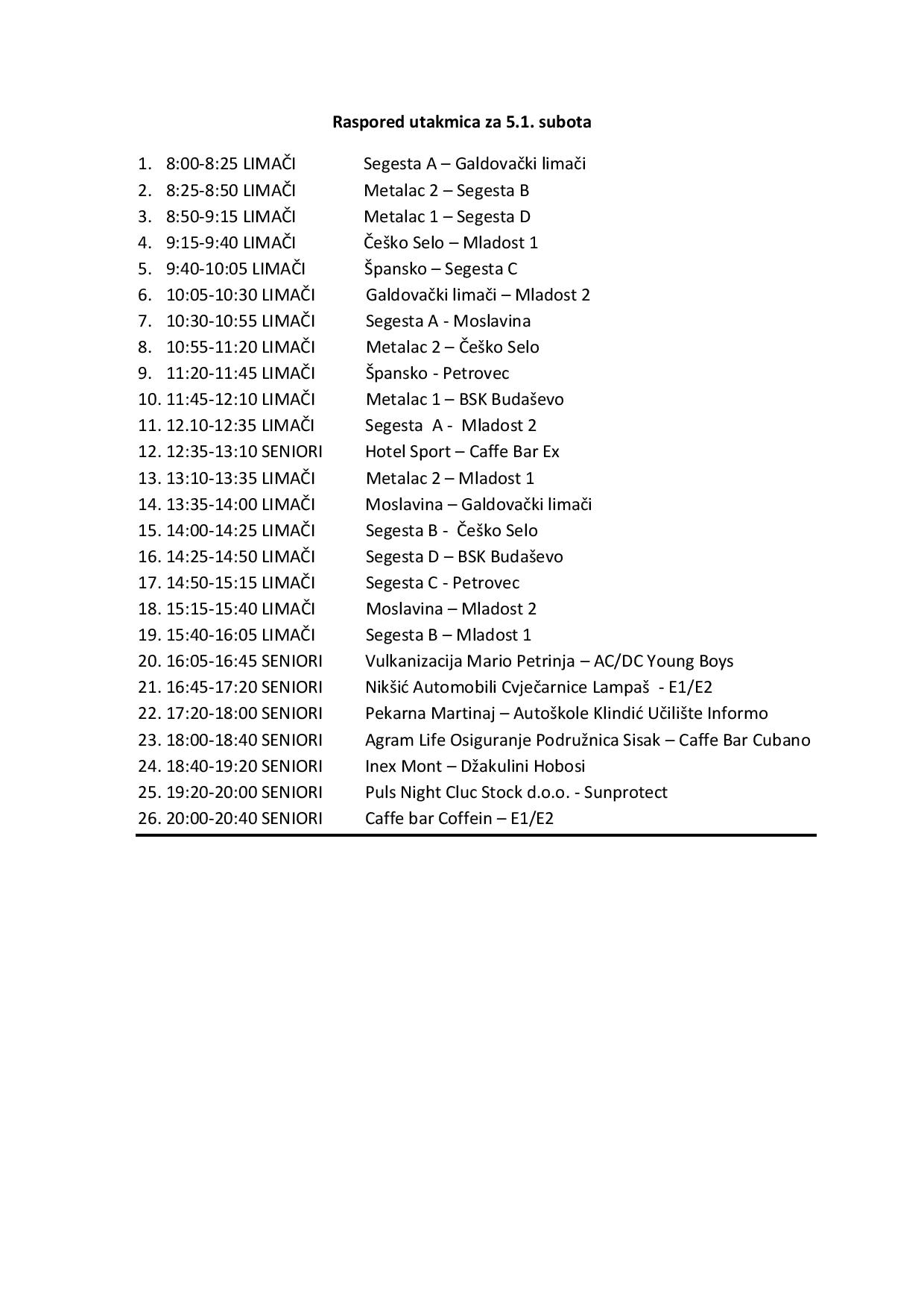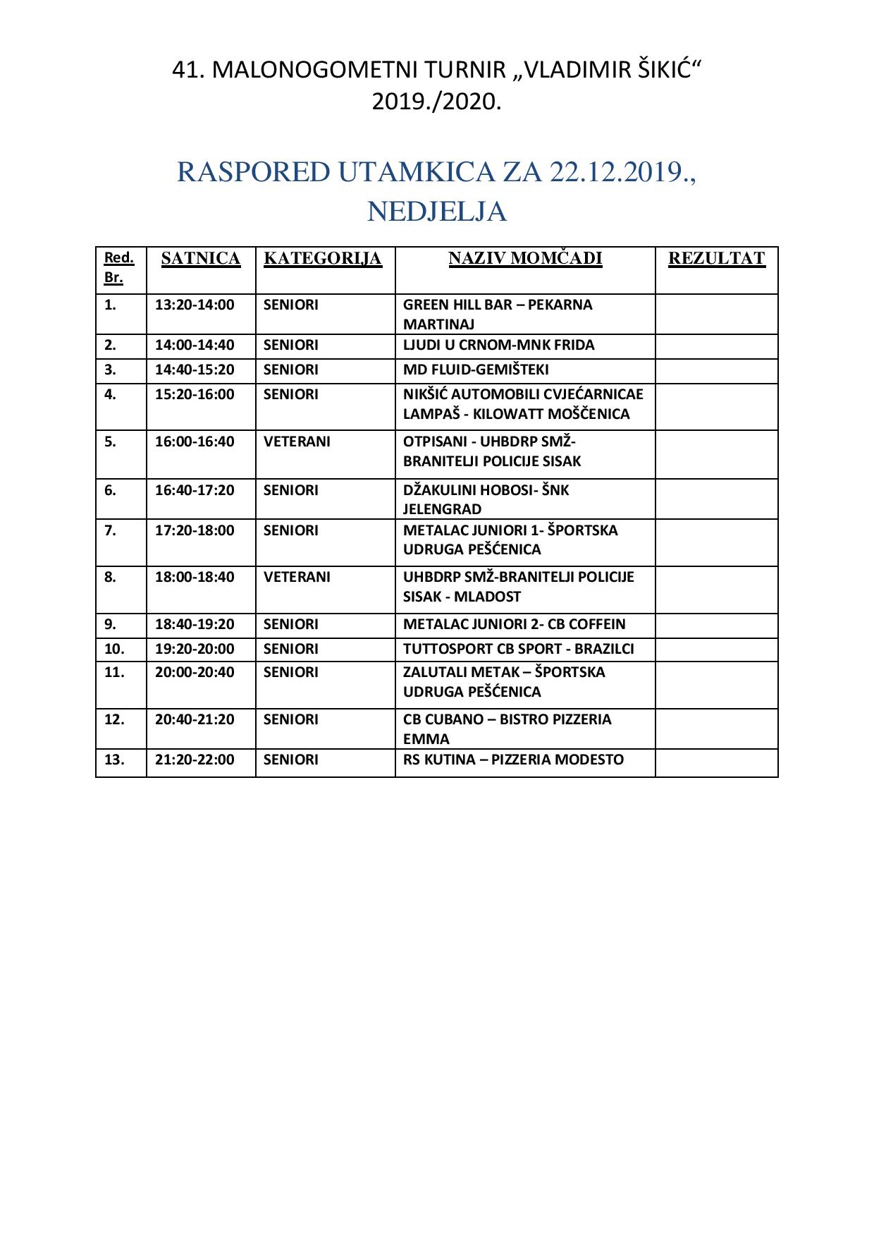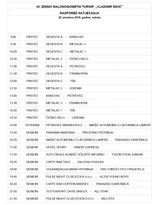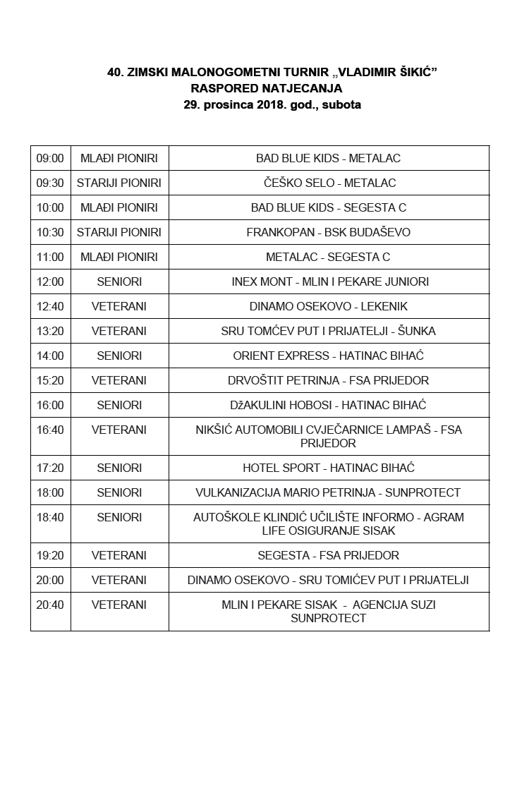 Raspored utakmica za 29.12.2018. sa malim izmjenama