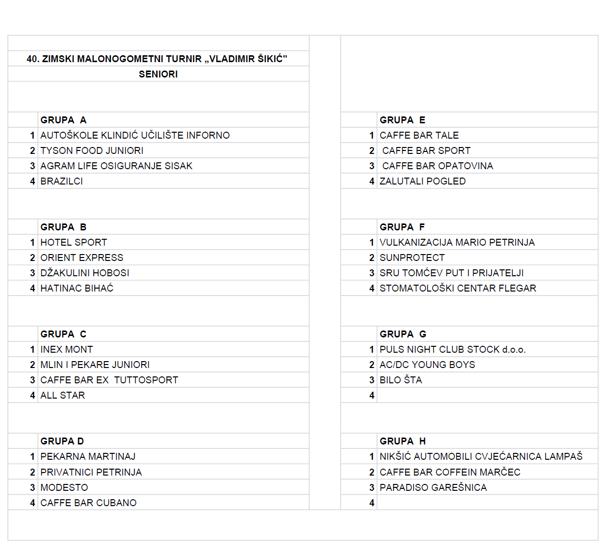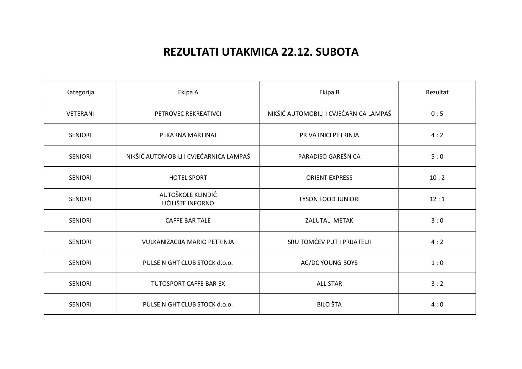 Rezultati utakmica seniora i veterana 22.12.2018. subota