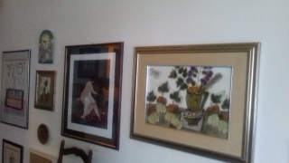 Poslije odlaganja kaputa ćemo ući u dnevnu sobu i sjesti u ugodne fotelje. Na zidovima su slike, ulja i akvareli umjetnika koji su svoje osjećaje rukom prenosili na platna.