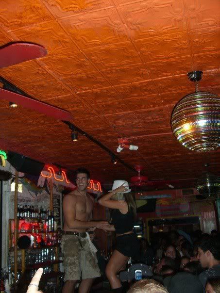 Sa seficom sam ono ludilo, sinoc smo izasle vani, bilo nam je zakon. Lik kojeg cete na slikama vidjeti sto plese je bartender kojeg zovemo "Superman". Lik je prejeben. Inace, evo prilazem slike iz mog omiljenog bara - Mo's Carribian... malo sam na pijaniju stranu tako zanemarite blesave face :0)