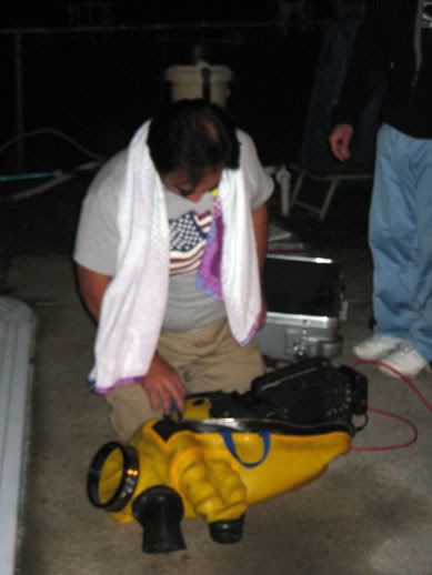 Joe-ov otac koji se isto zove Joe, priprema torbu za podvodno snimanje..